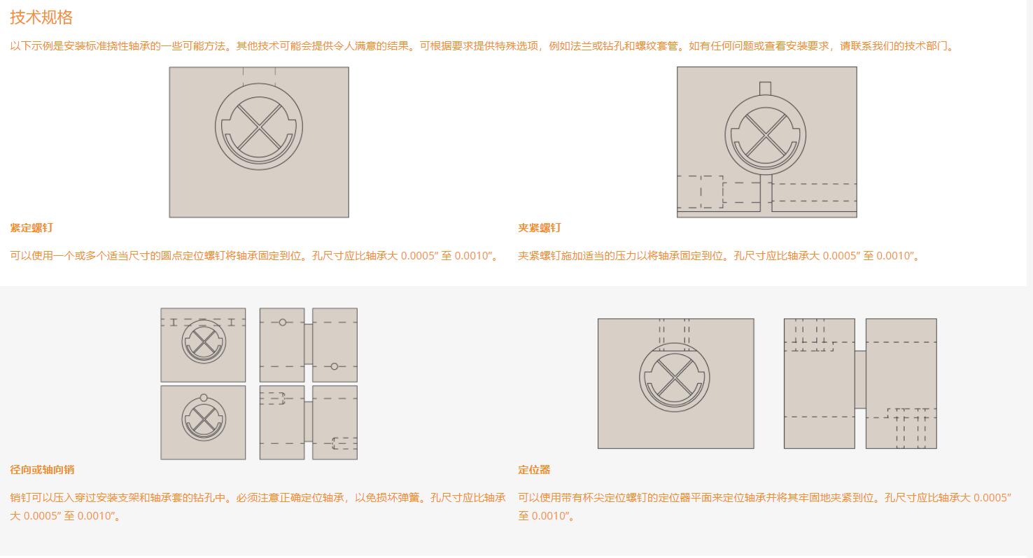 以下示例是安裝標(biāo)準(zhǔn)撓性軸承的一些可能方法。其他技術(shù)可能會提供令人滿意的結(jié)果。可根據(jù)要求提供特殊選項,例如法蘭或鉆孔和螺紋套管。如有任何問題或查看安裝要求,請聯(lián)系我們的技術(shù)部門。